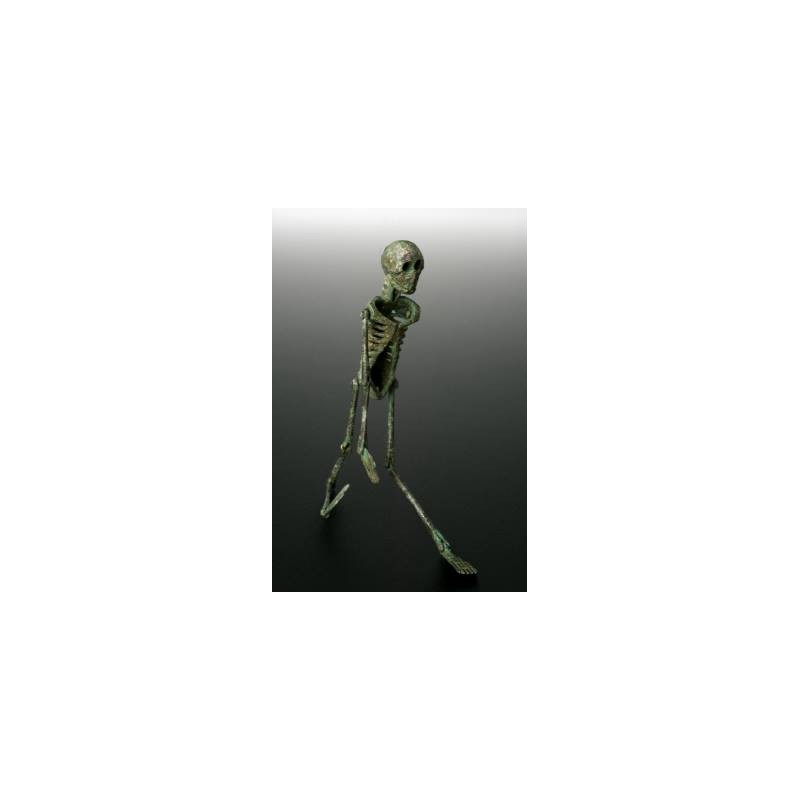 This is a special type of memento mori called a larva convivialis, given to revellers at a banquet or feast. For an unknown reason the right leg of the articulated skeleton has been substituted for a left arm. This is an extremely rare example. {ca. 199 BCE-500 CE} via the Science Museum, London. by rowena