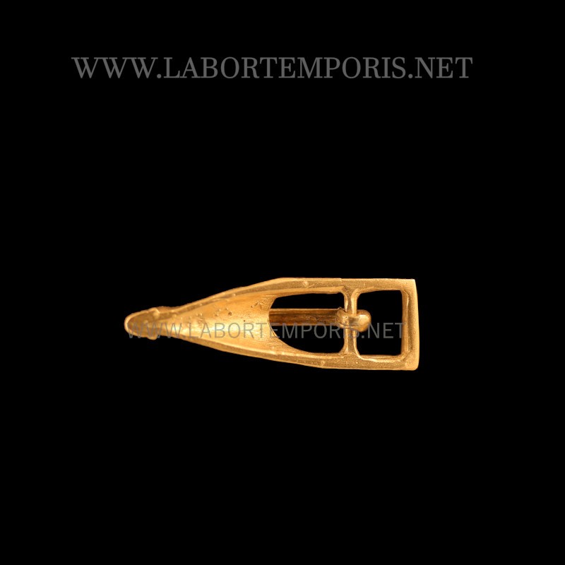 Reproduction d'une boucle de chaussure du XIII siècle médiévale conforme à l'original dans ses dimensions et le matériel , archéo-compatibe, adapte aux reconstituteurs historiques et aux musées. Entièrement fabriqué à la main dans le laboratoire Labortemporis, d'origine italienne mais situé en France.
